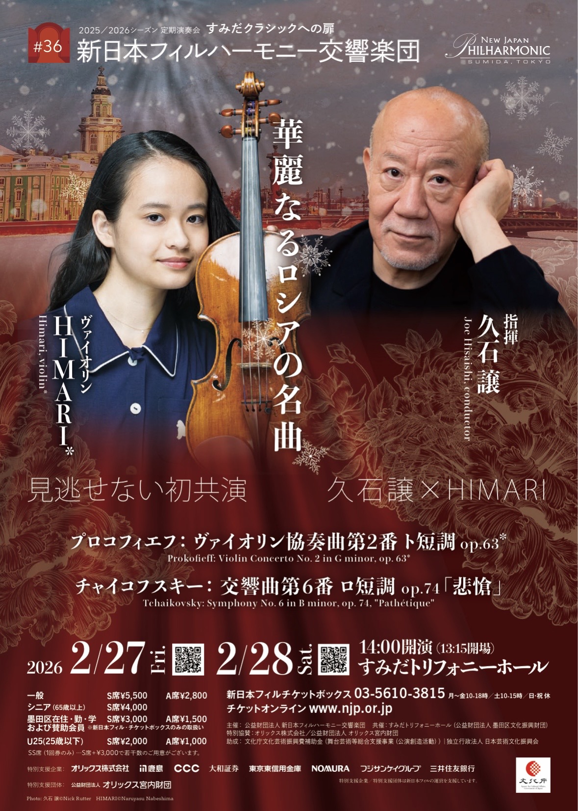 Himari will appear as a soloist with the New Japan Philharmonic Orchestra in their subscription concert series “Door to Sumida Classics.”